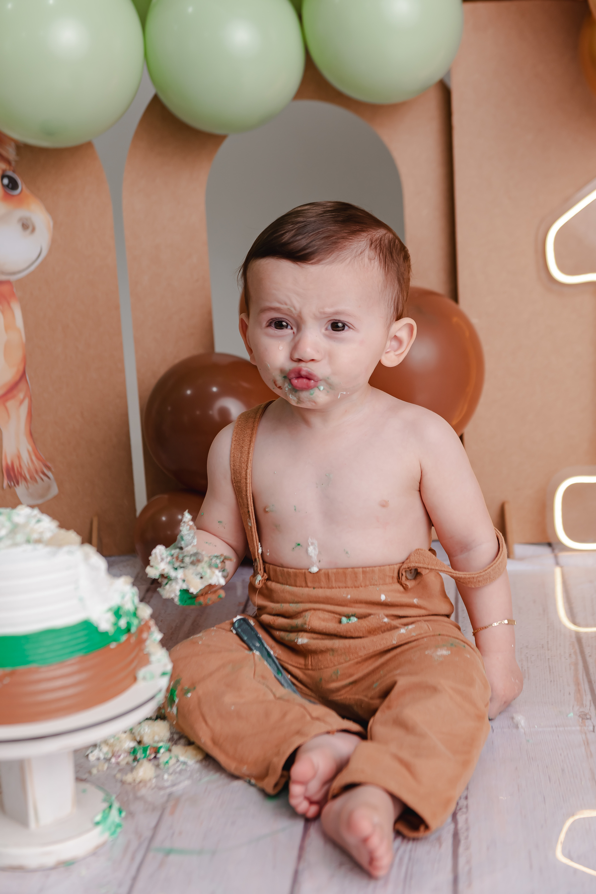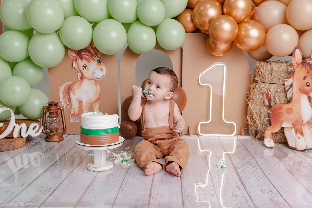 “O Conrado completou seu primeiro aninho com um ensaio Smash the Cake superdivertido! Cada risada, cada mãozinha cheia de bolo, tudo registrado com muito carinho para guardar essa fase tão doce da infância.”